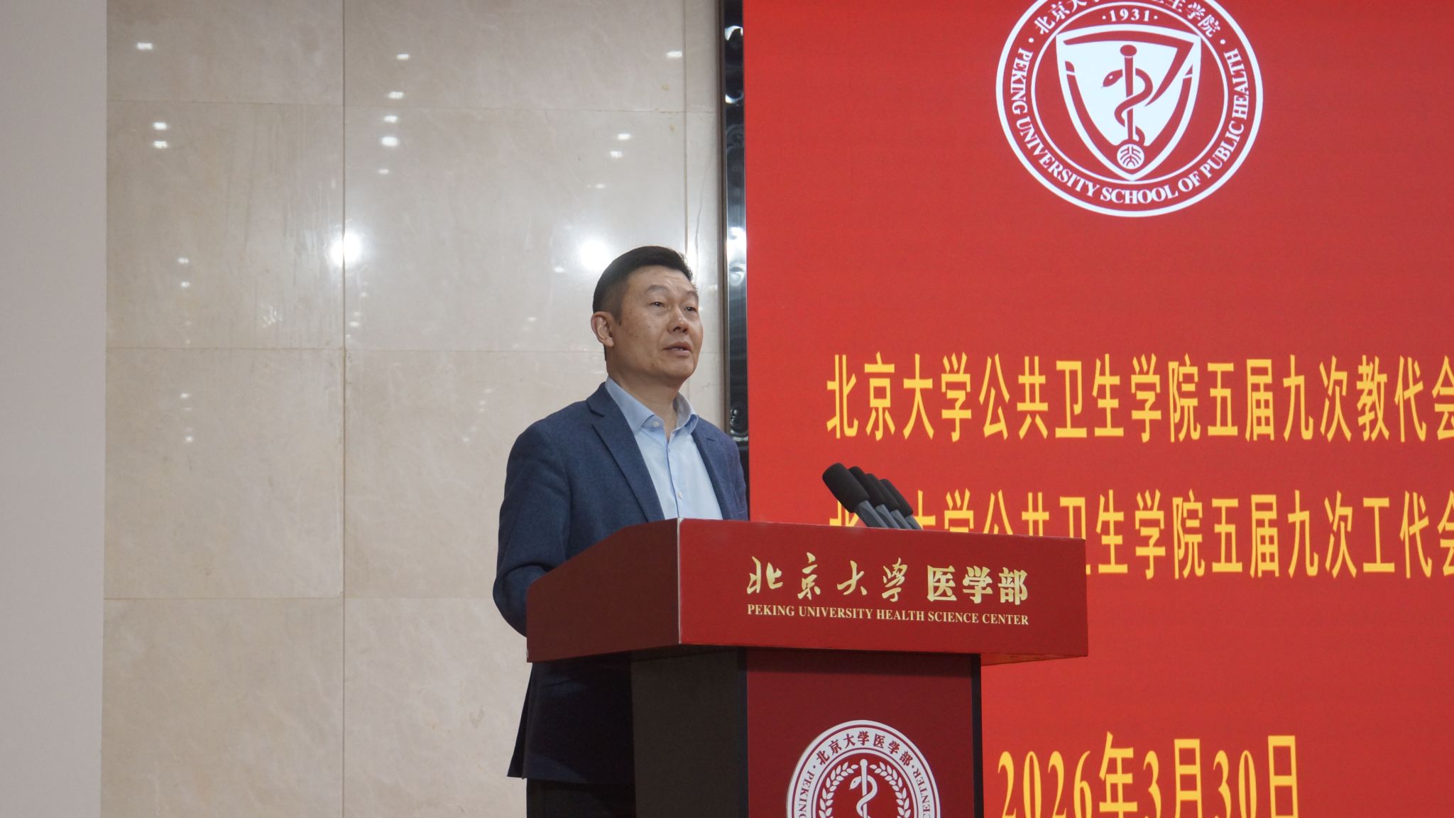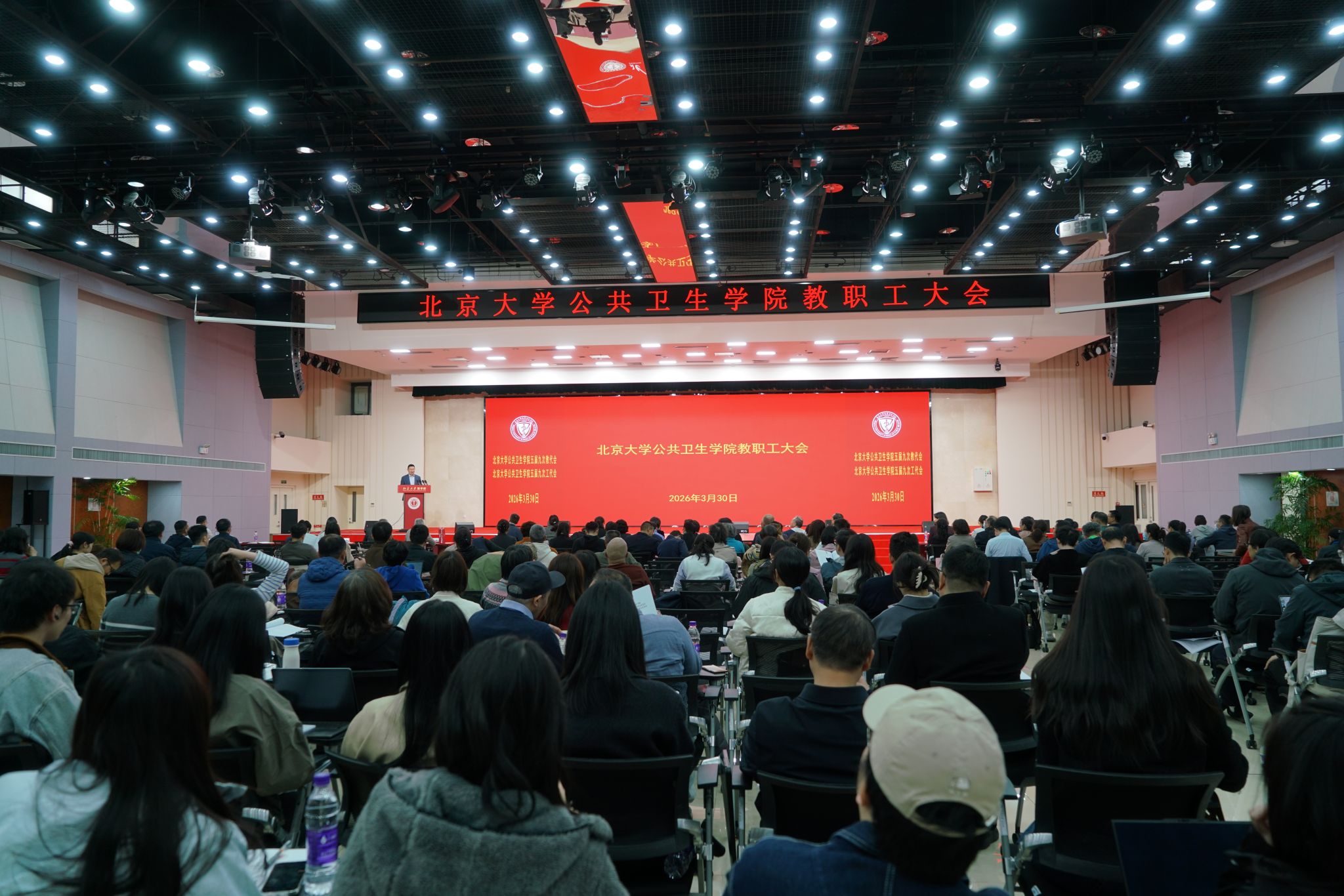 2026年3月30日下午,北京大学公共卫生学院2026年教职工大会、第五届教职工代表大会第九次会议、第五届工会会员代表大会第九次会议在医学部跃进厅四层多功能厅召开。