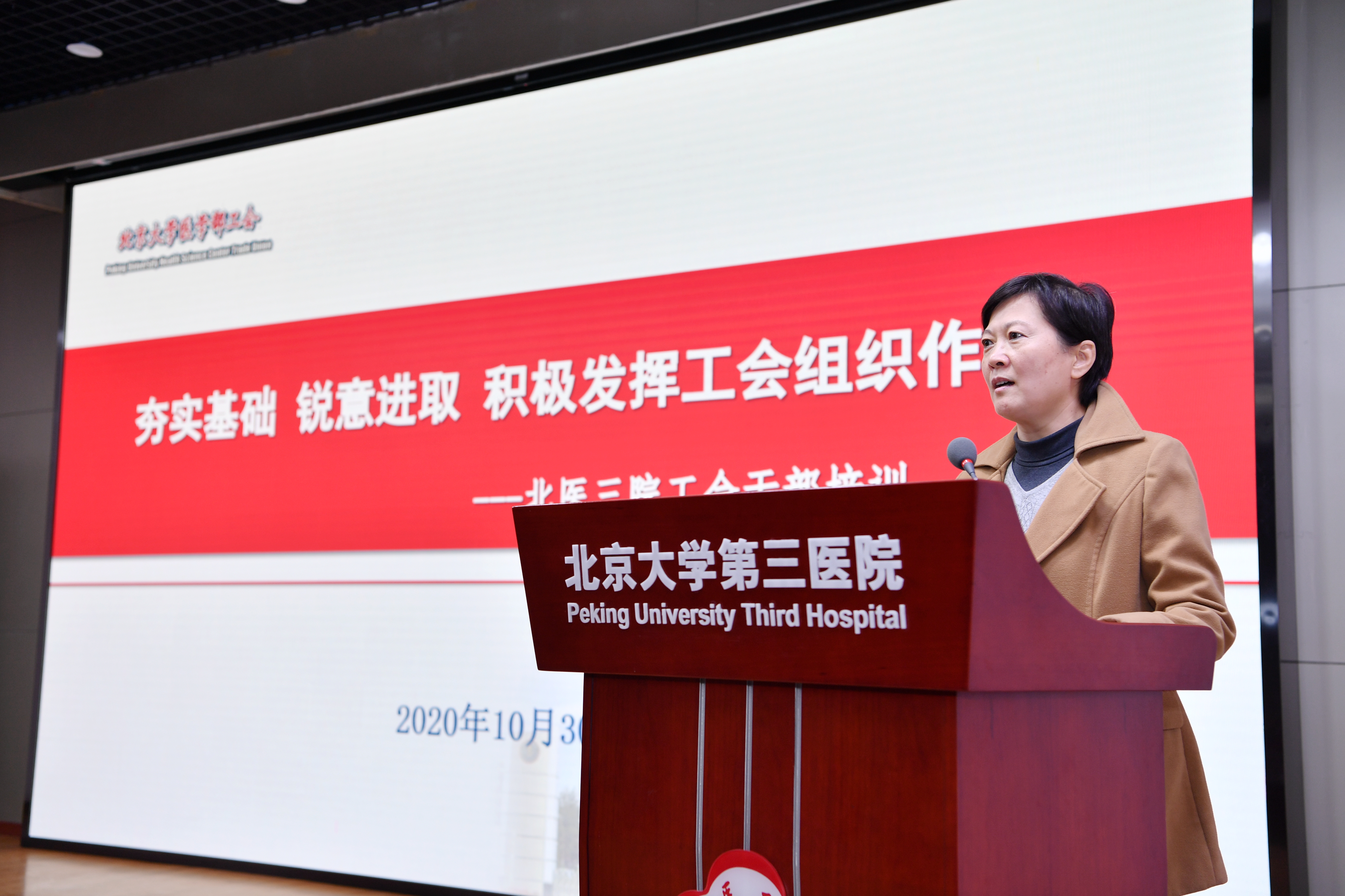 为深入学习习近平新时代中国特色社会主义思想,进一步贯彻落实中央党的群团工作会议精神和习近平总书记关于工会工作的重要论述,提高院工会干部的政治思想素质和业务能力,10月30日下午,第三医院工会举办了2020年工会干部培训会。医学部工会常务副主席刘穗燕,院党委书记金昌晓、党委副书记兼工会主席刘东明、工会常务副主席赵荣生、工会副主席王军出席本次培训会。院工会委员、科室工会干部、群体协会负责人近200人参加了本次会议。会议由常务副主席赵荣生主持。