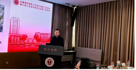 大会在高亢的国歌声中拉开序幕。会议首先通报了增补和调整后勤第四届职工代表大会第三次会议、第八届工会会员代表大会第三次会议代表情况。总务处付帅处长作2025年总务处工作报告。报告以《用品质服务赋能基础保障,努力推进后勤管理服务实践》为题,从学习教育、服务保障、队伍建设以及聚焦““十五五””开局之年四个方面,全面、细致的阐述了过去一年总务处的工作成绩,以及未来以“双一流”建设为契机,聚焦十五五规划,建设精管后勤、智慧后勤、育人后勤、绿色后勤。