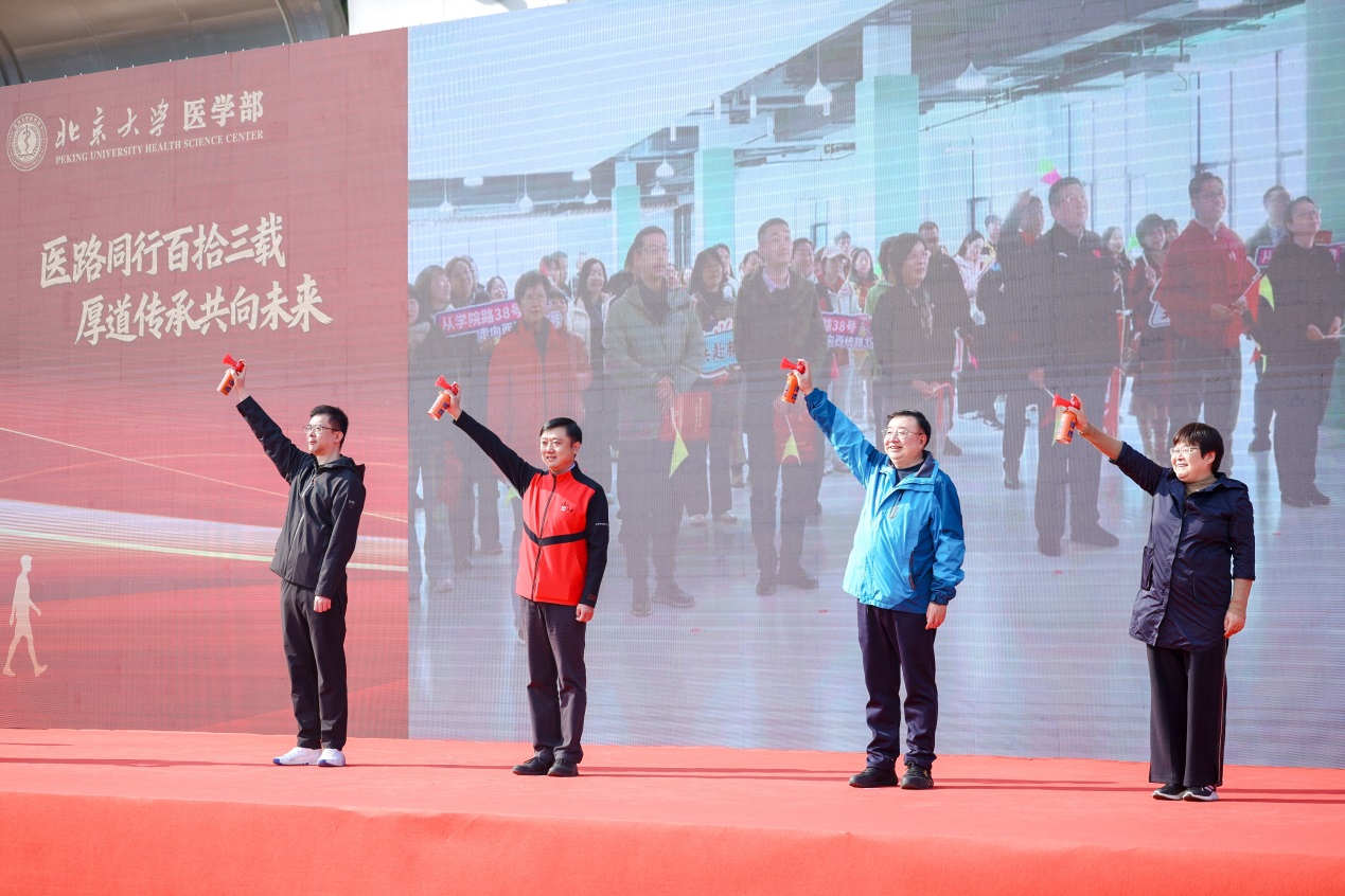 随着鸣枪发令声响起,两地会场参与者们迈出坚定步伐,以自信自强、守正创新的精神风貌,向北大医学献上最诚挚的生日祝福。